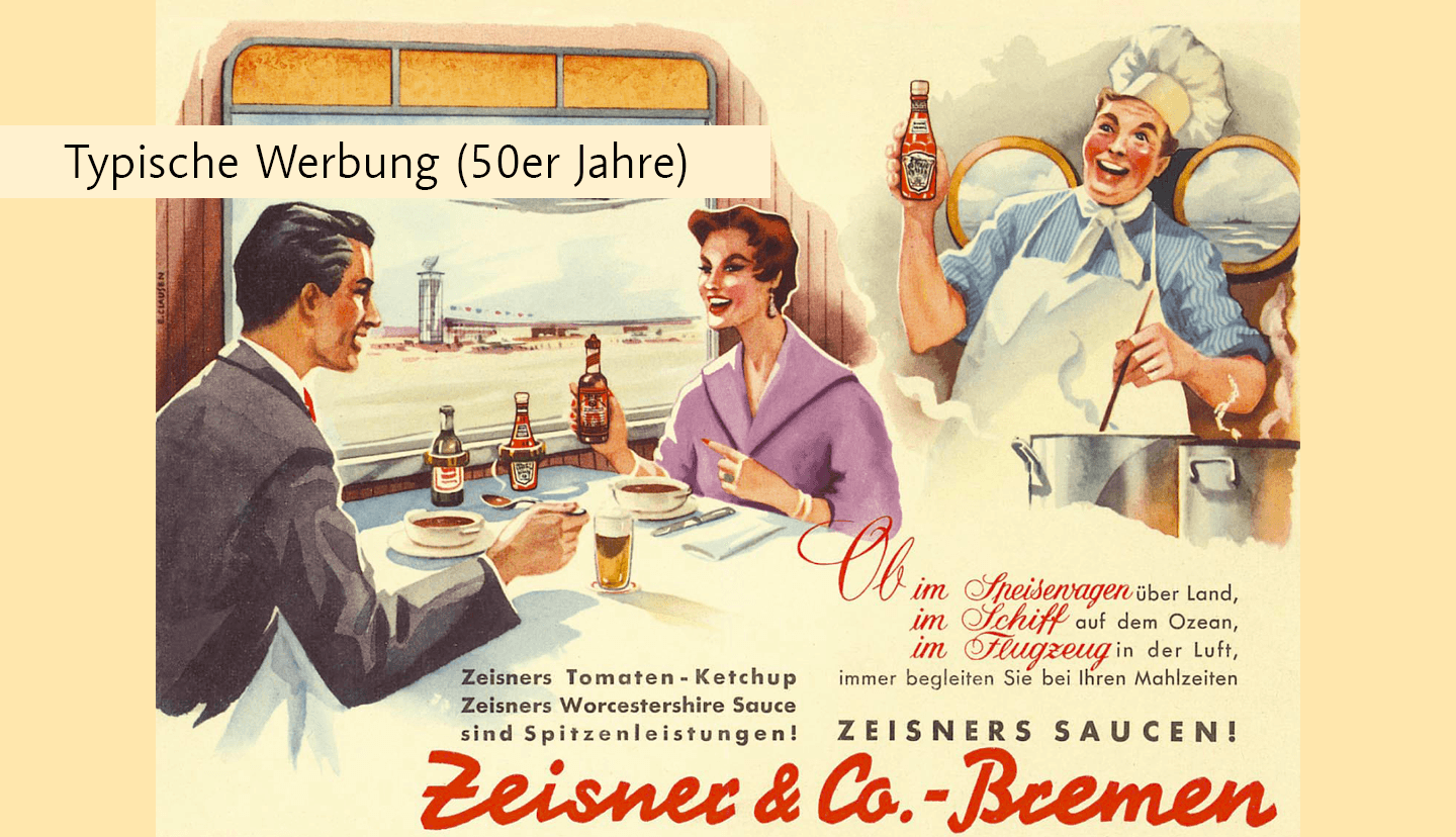 Werbung im Stil der Zeit. Was vor 50 oder gar 100 Jahren modernes Marketing war, läßt uns heute teilweise schmunzeln. Doch zeigen uns alle Beispiele deutlich die lange Tradition des Unternehmens und seiner Produkte.